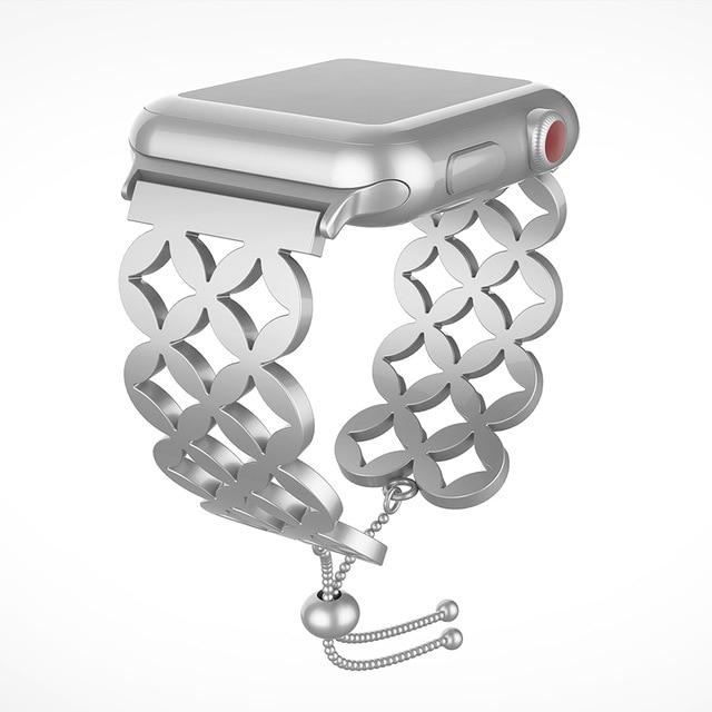 Our Fashionably Apple Wristband is perfect to wear every day to dress up basic jeans and tee look while adding a little touch of class that the boring silicone bands just don't offer.